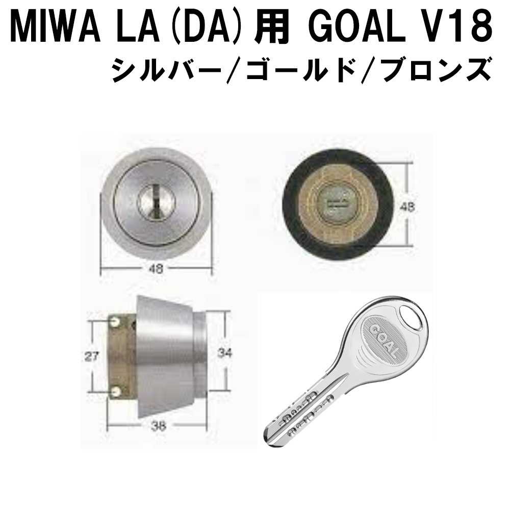 MIWA LA(DA) GOAL V18鍵交換シリンダー シルバー、ゴールド、ブロンズ 扉厚:29mm〜43mm