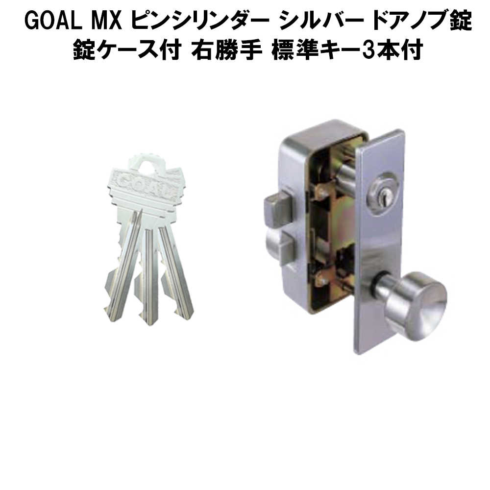 GOAL MX ピンシリンダー 鍵交換 シルバー ドアノブ錠 錠ケース付 左勝手/右勝手 標準キー3 本付 送料無料